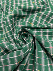 1 YD Cotton Yarn-Dyed Plaid Vintage - Green and White with Variegated Slub Plaid