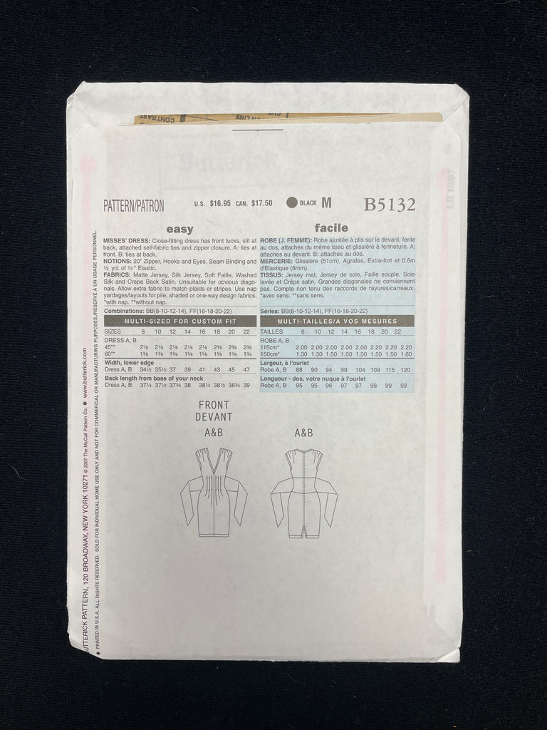 2007 Butterick 5132 Sewing Pattern - Dress FACTORY FOLDED
