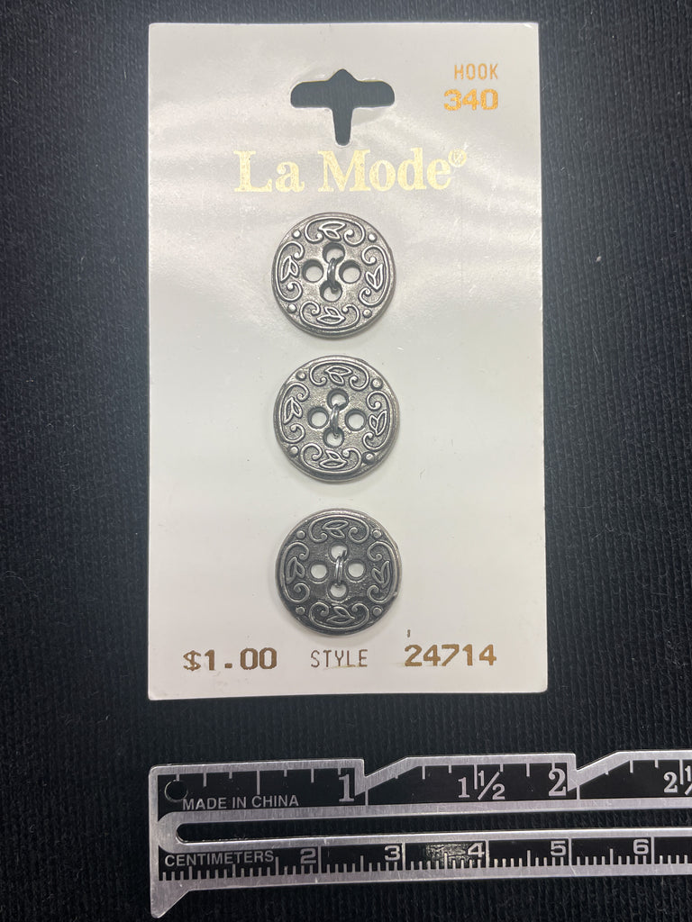 Button Metal Set of 3 - Pewter-Toned Filigree with Leaves