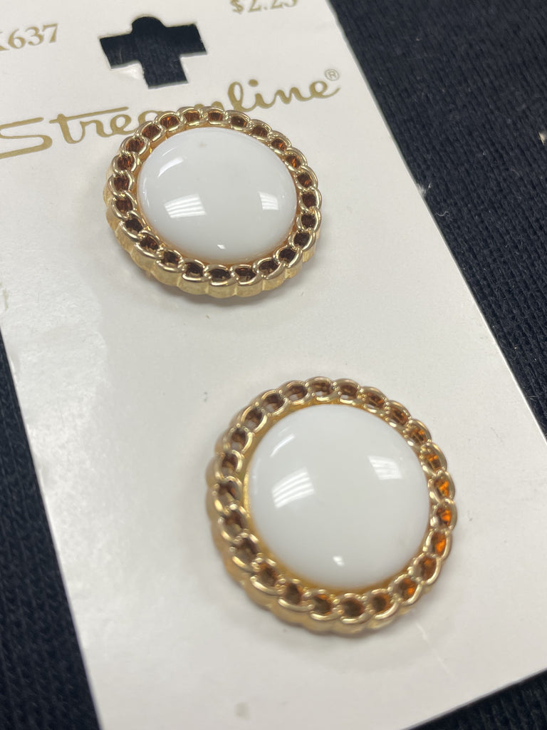 Button Plastic Set of 2 Vintage - White with Gold Metallic "Chain"