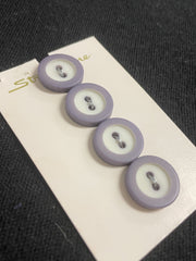 Button Plastic Set of 4 Vintage - White with Purple Ring