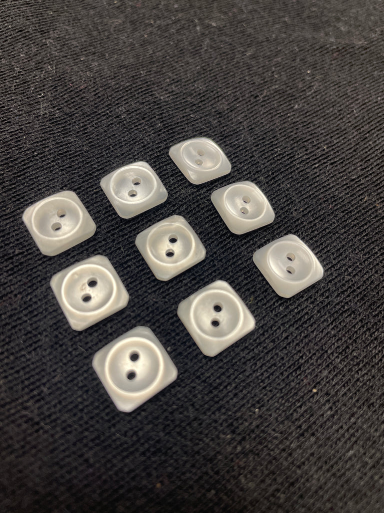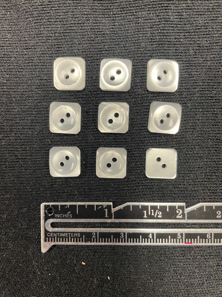 Button Plastic Set of 9 - Pearlescent White Squares with Sunken Centers