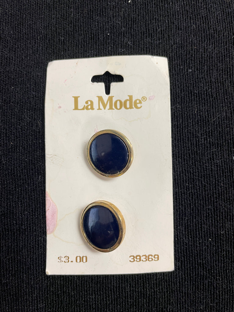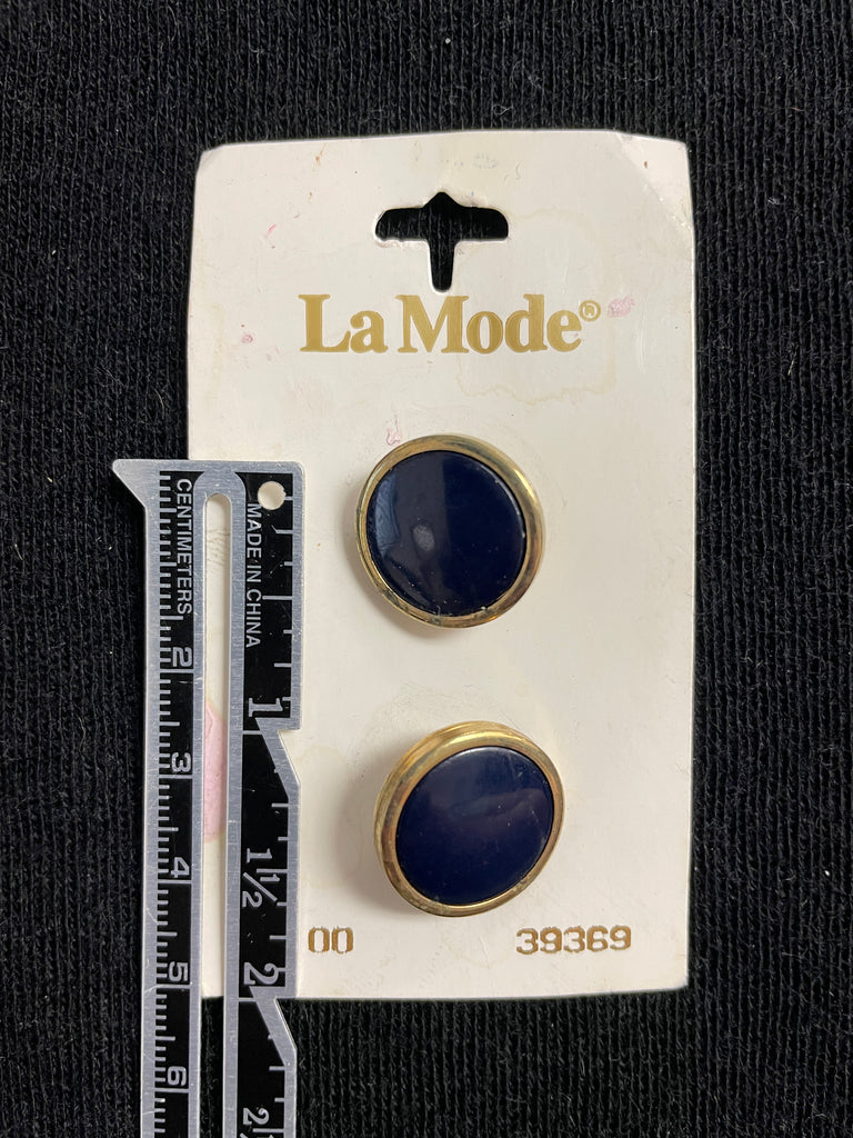 Buttons Plastic Set of 2 Vintage - Navy Blue with Gold-Tone Edge