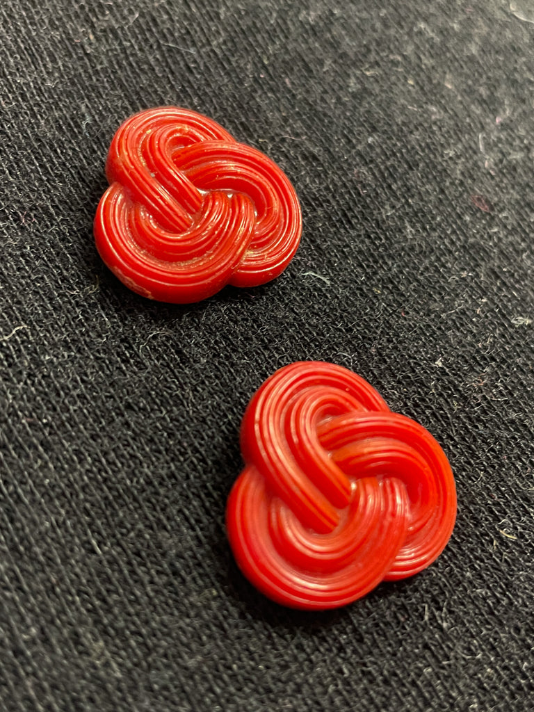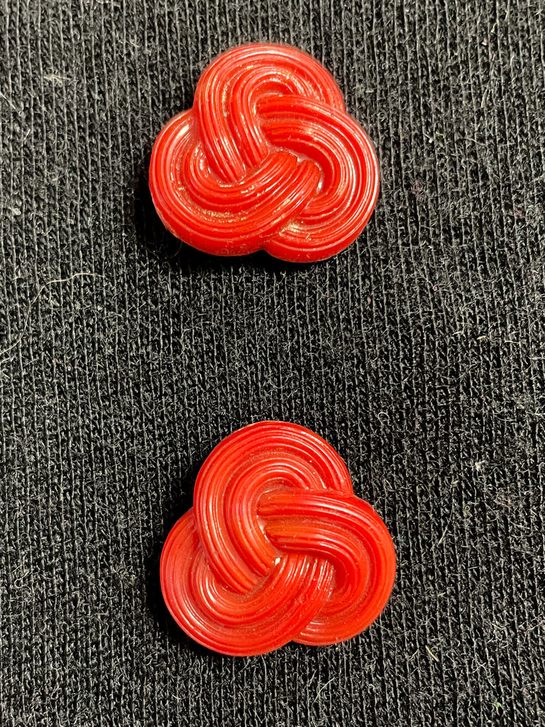 Buttons Plastic Set of 2 Vintage - Red "Knots"