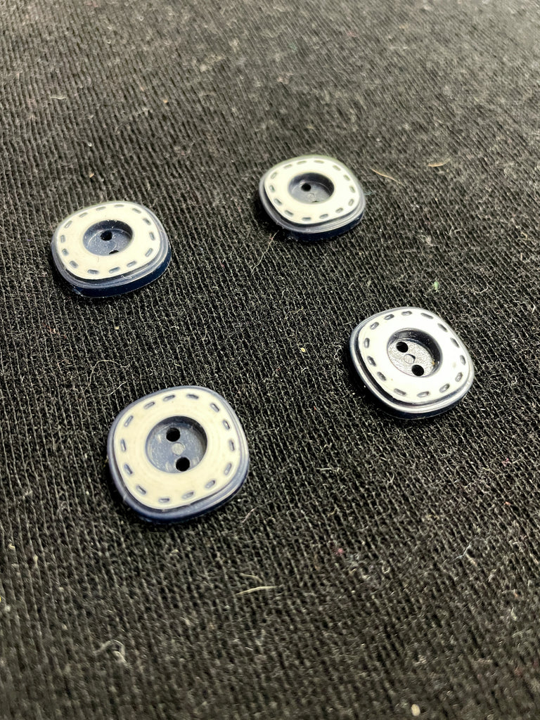 Buttons Plastic Set of 4 - Navy Blue Rounded Squares with White