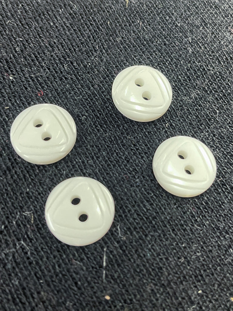 Buttons Plastic Set of 4 Vintage - White with Embossed Concentric Triangles