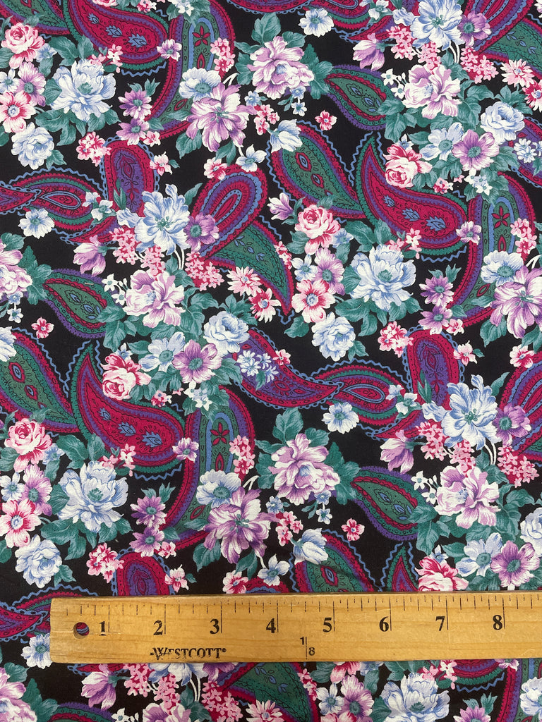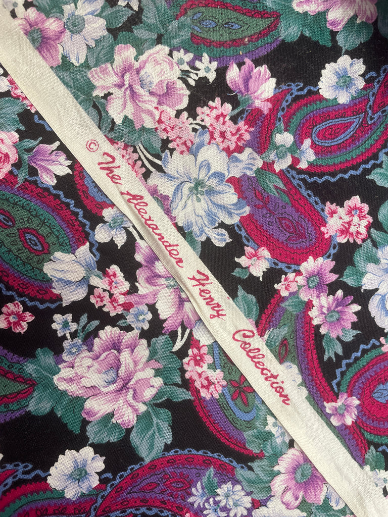 Cotton Vintage - Flowers and Paisley on Black