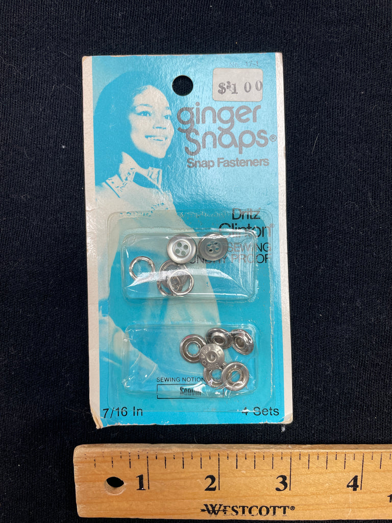 Silver-toned metal with pearlescent white plastic "4-hole button" tops.