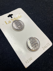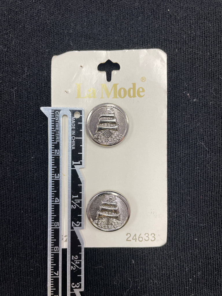 Button Metal Set of 2 - Silver-Tone with a Ship With 3 Sails