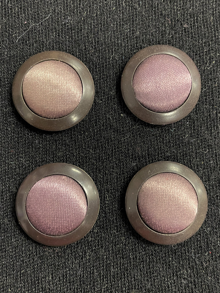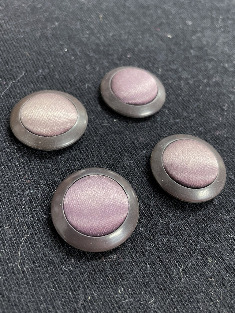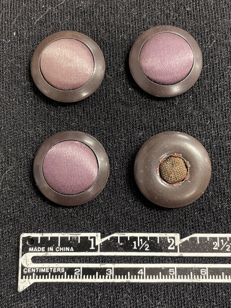 Buttons Plastic and Fabric Set of 4 Vintage - Muted Purple Satin with Brown Edge