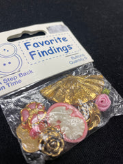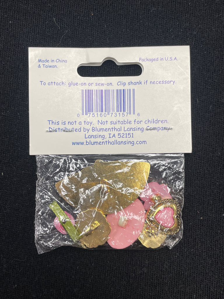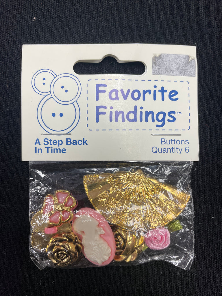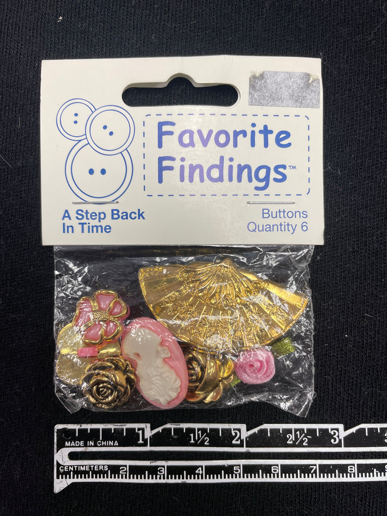 Buttons Plastic Set of 6 Vintage - Gold Tone and Pink