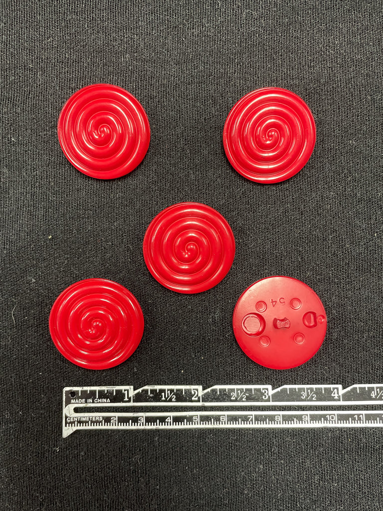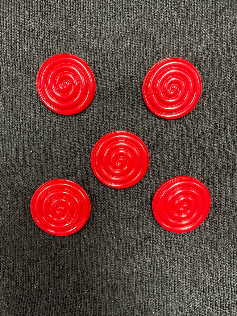 Buttons Plastic Set of 6 Vintage - Red Spirals