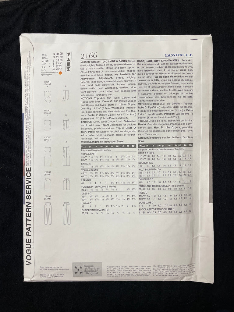 Pattern Pieces: missing armhole facing (piece #4) but instructions are included.