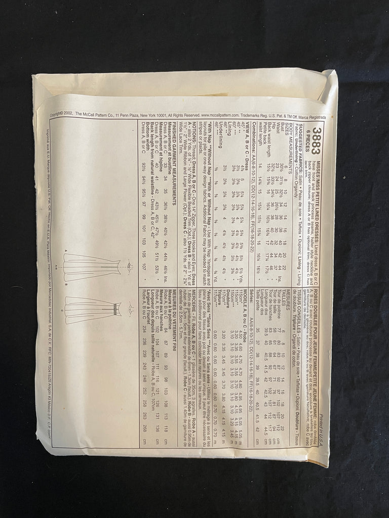 Pattern Pieces: missing armhole facing (piece #4) but instructions are included.