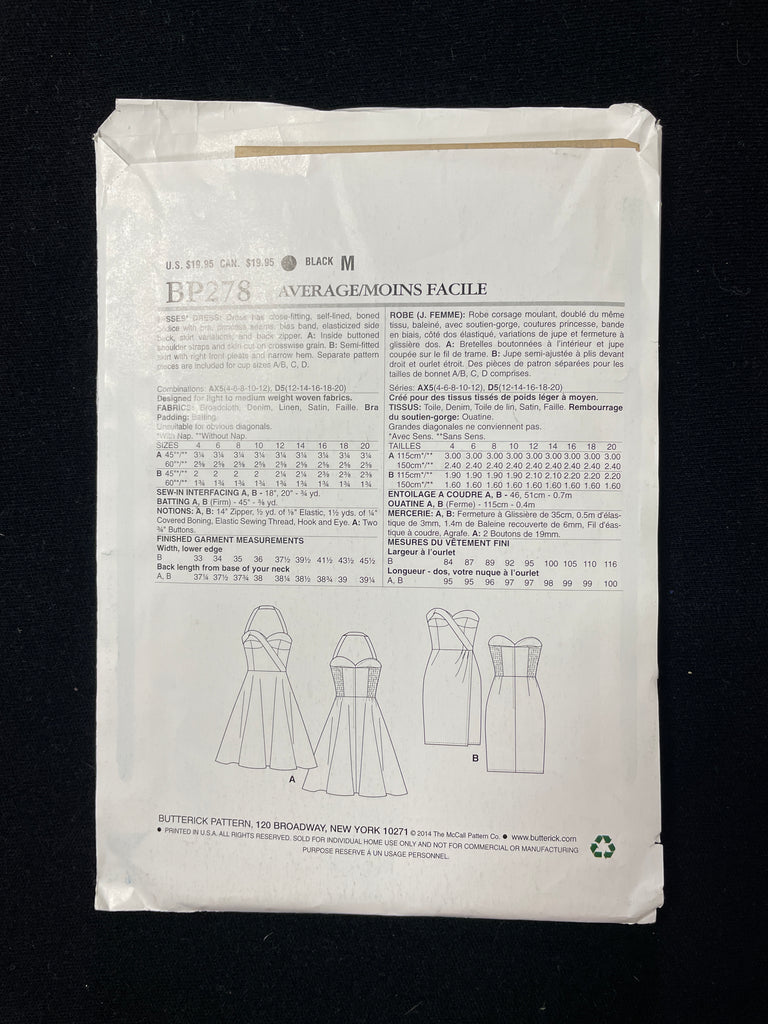 Pattern Pieces: missing armhole facing (piece #4) but instructions are included.