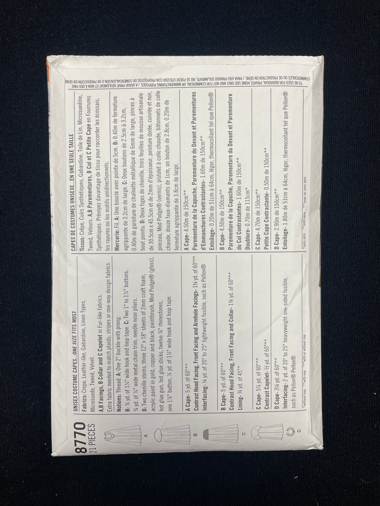 Pattern Pieces: missing armhole facing (piece #4) but instructions are included.