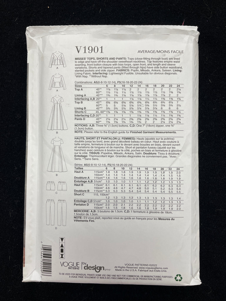 Pattern Pieces: missing armhole facing (piece #4) but instructions are included.