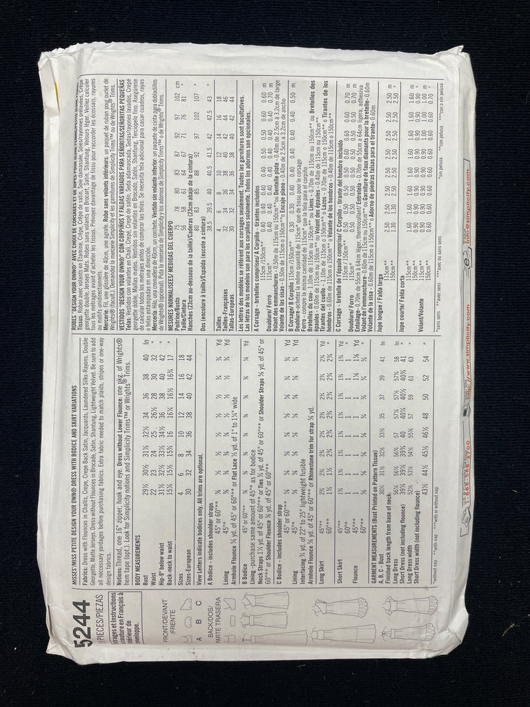 2003 Simplicity 5244 Sewing Pattern - Adult Dresses FACTORY FOLDED