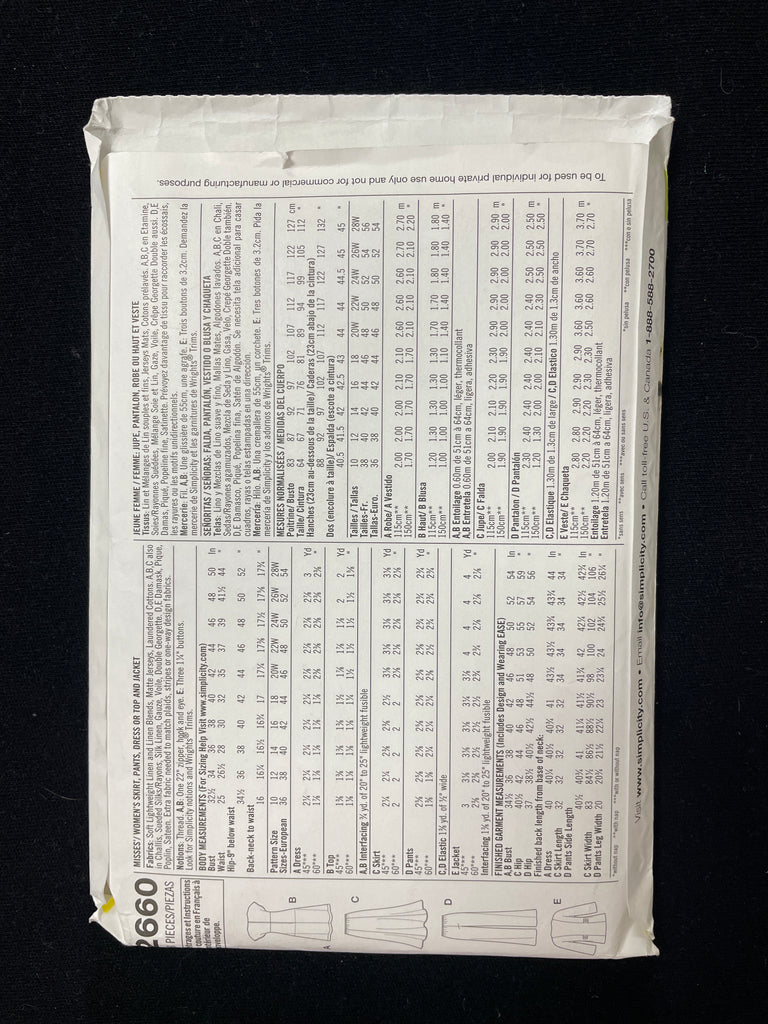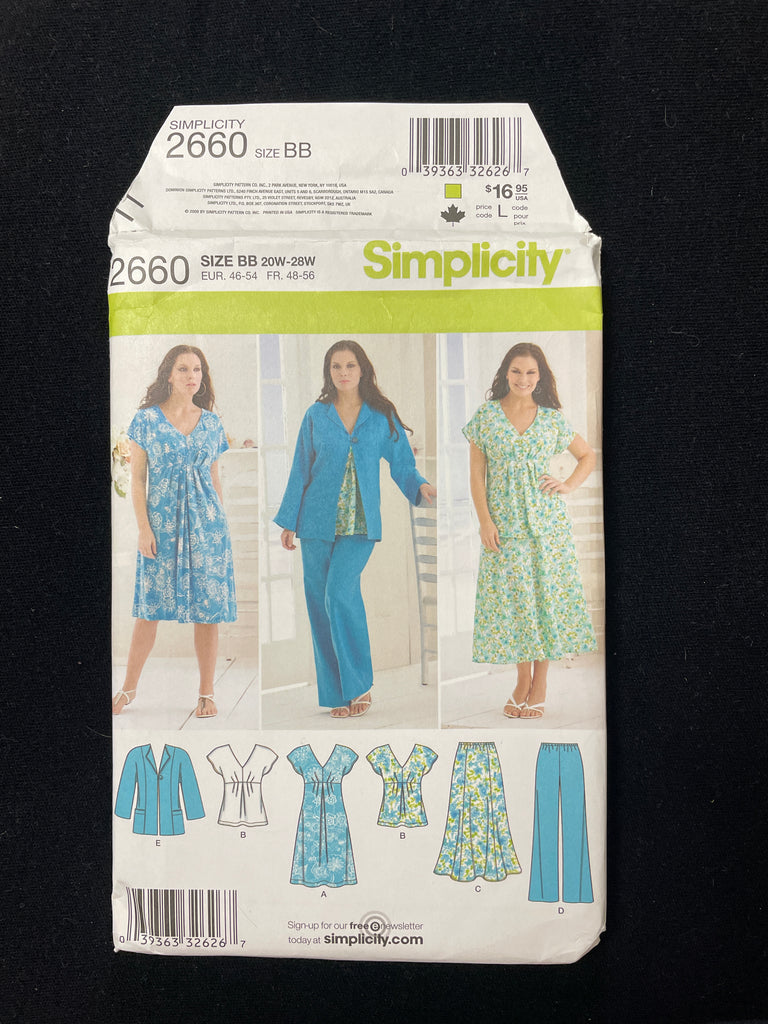 2009 Simplicity 2660 Sewing Pattern - Women's Jacket, Top, Skirt and Pants FACTORY FOLDED