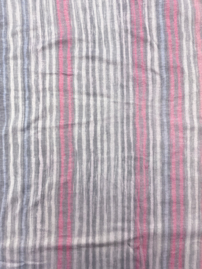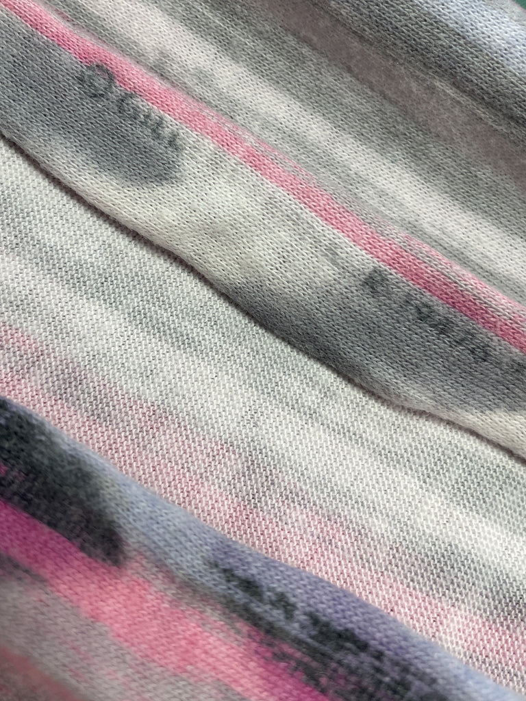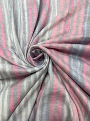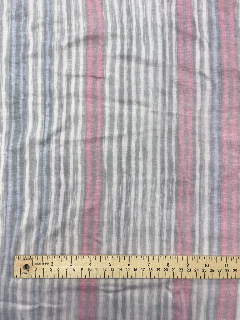 1 1/2 YD Poly/Cotton Printed Stripe Knit Vintage - "Chalk" Stripes in Gray, Pinks and Lavender