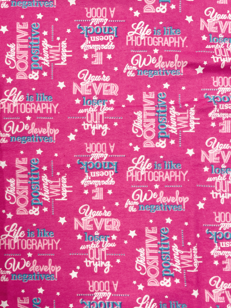 2015 2 YD Cotton Flannel - Hot Pink with Positive Words