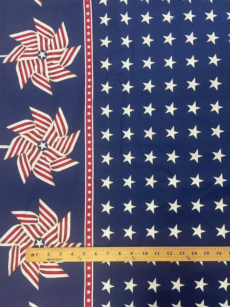 3 3/4 YD Cotton - Navy Blue with White Stars and American Flag Pinwheel Borders