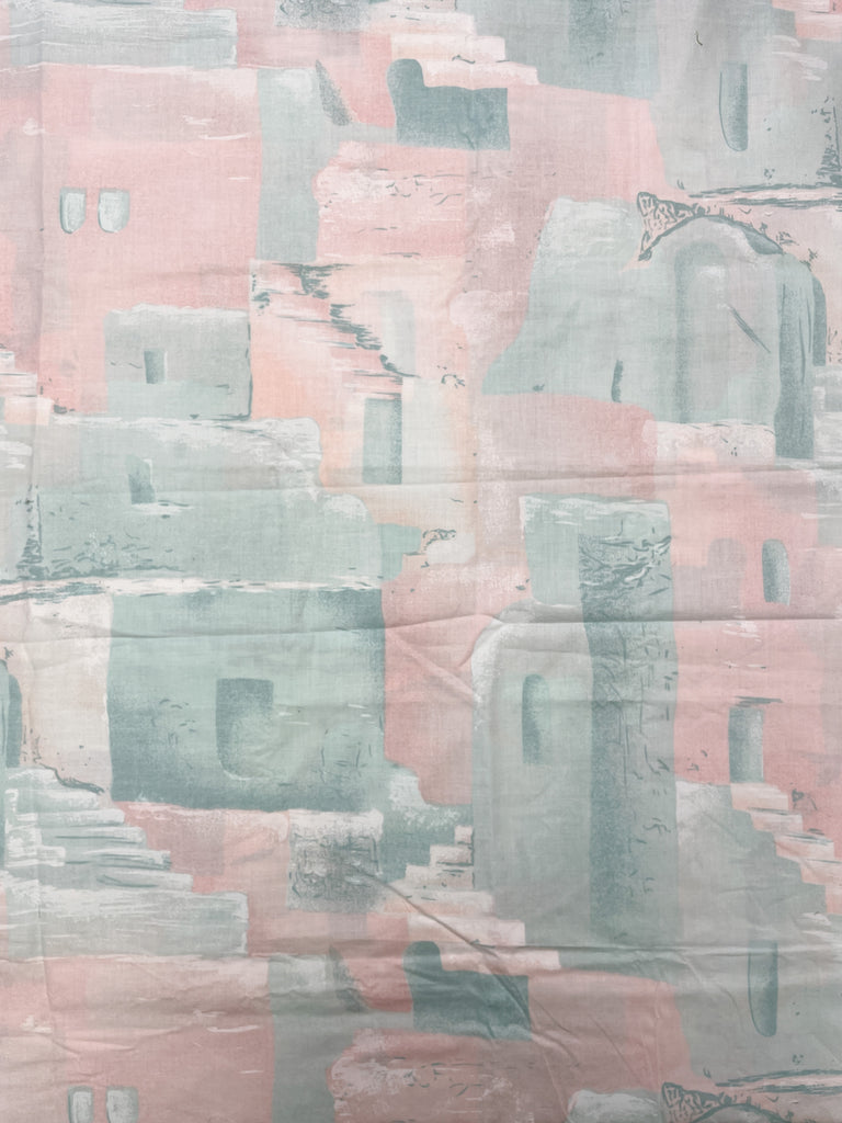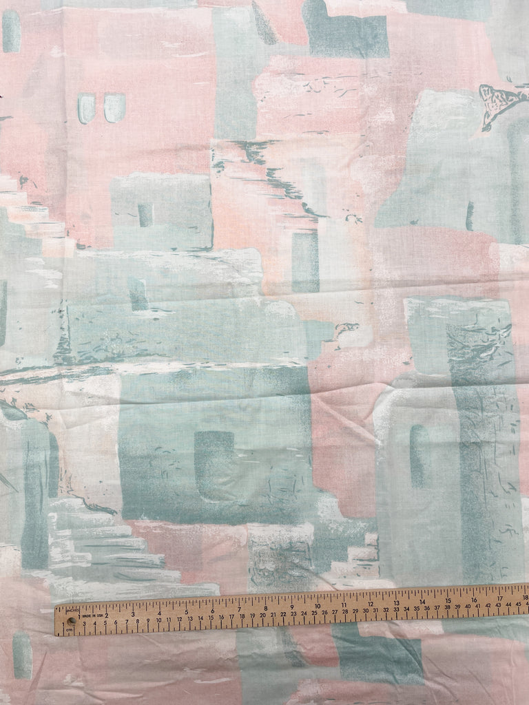 3 YD Cotton - Southwestern Adobe Scene in Pastel Pink and Aqua