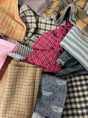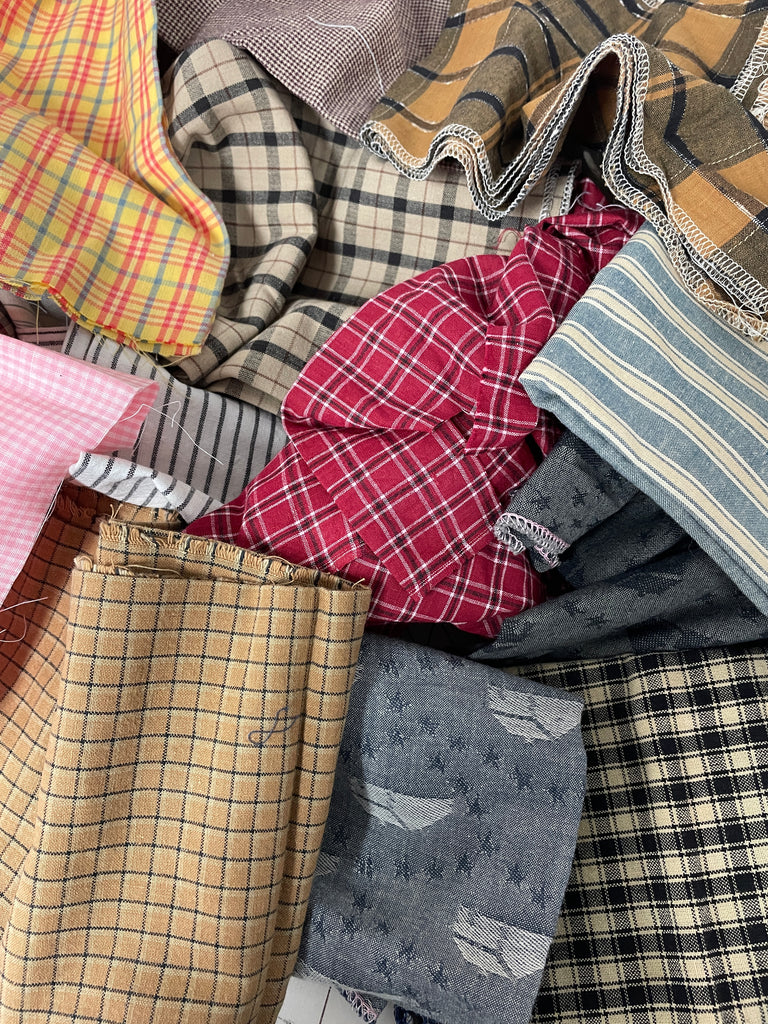 This listing is for 1 pound of yarn-dyed cotton fabric scraps in various colors and amounts.