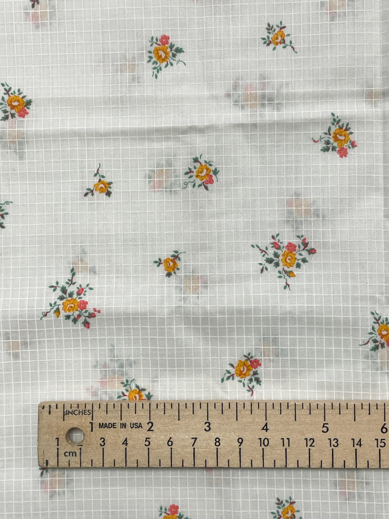 1 1/4 YD Poly/Cotton - White Batiste with White Grid and Orange Flowers
