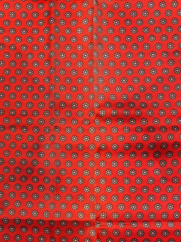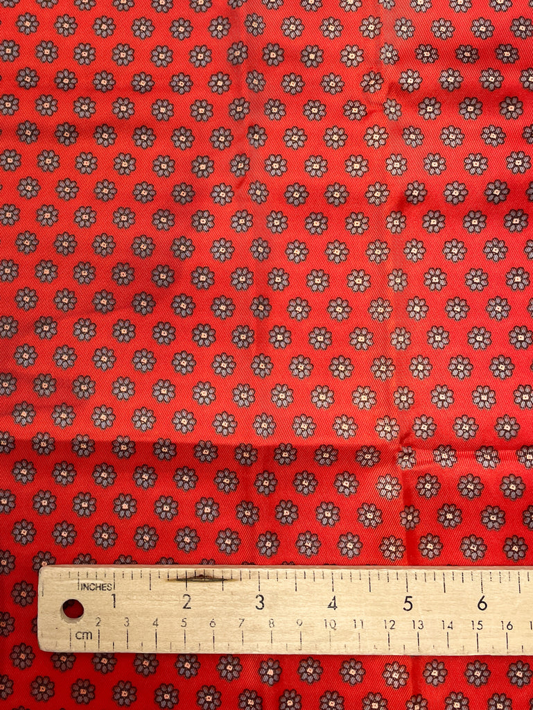 2 3/8 YD Polyester Lining Vintage - Tomato Red with Small Gray Flowers