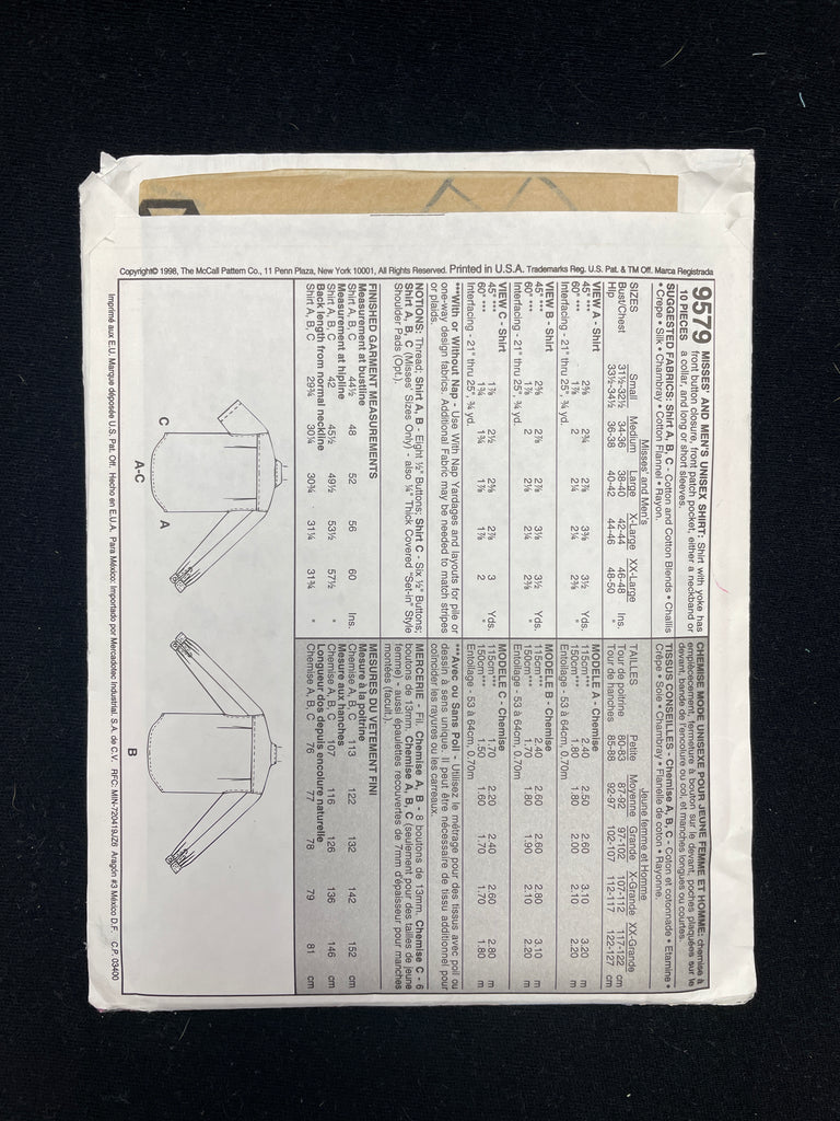Pattern pieces: yoke (piece E) is on newsprint instead of tissue. Instructions are included.