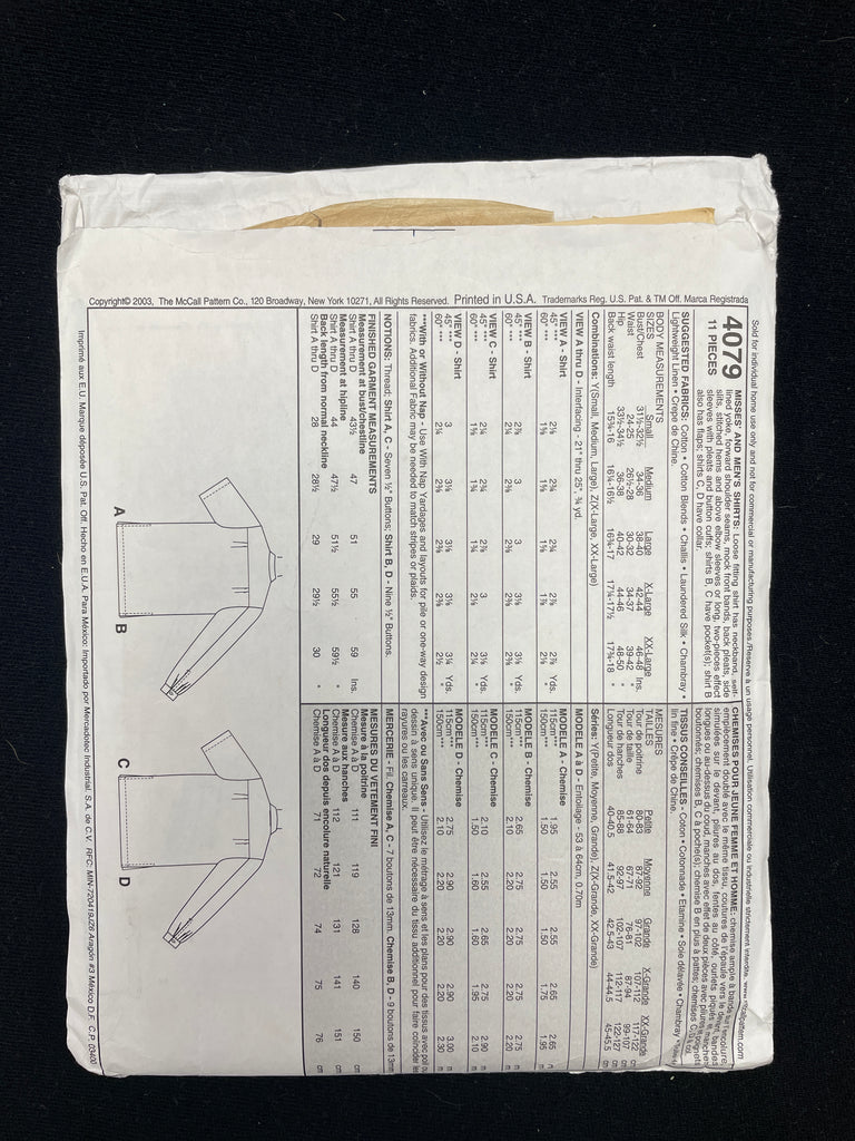 Pattern pieces: yoke (piece E) is on newsprint instead of tissue. Instructions are included.