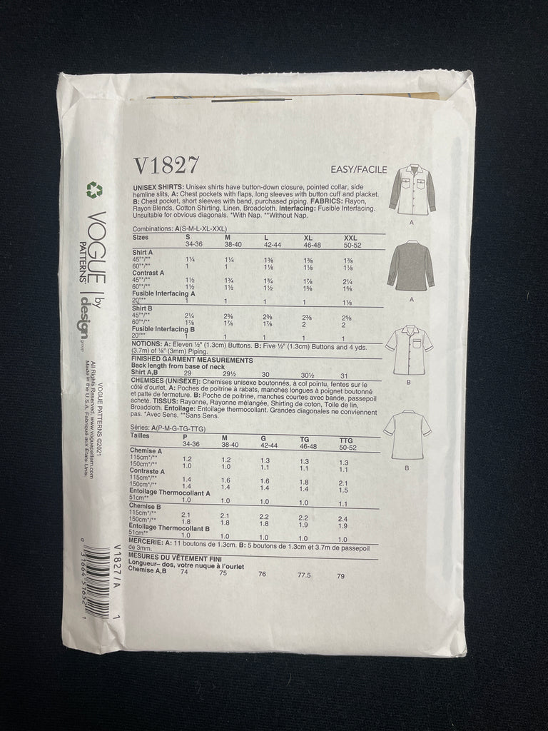 Pattern pieces: yoke (piece E) is on newsprint instead of tissue. Instructions are included.