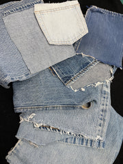 This listing is for 1 pound of quilting cotton fabric scraps in various blue prints and solids.