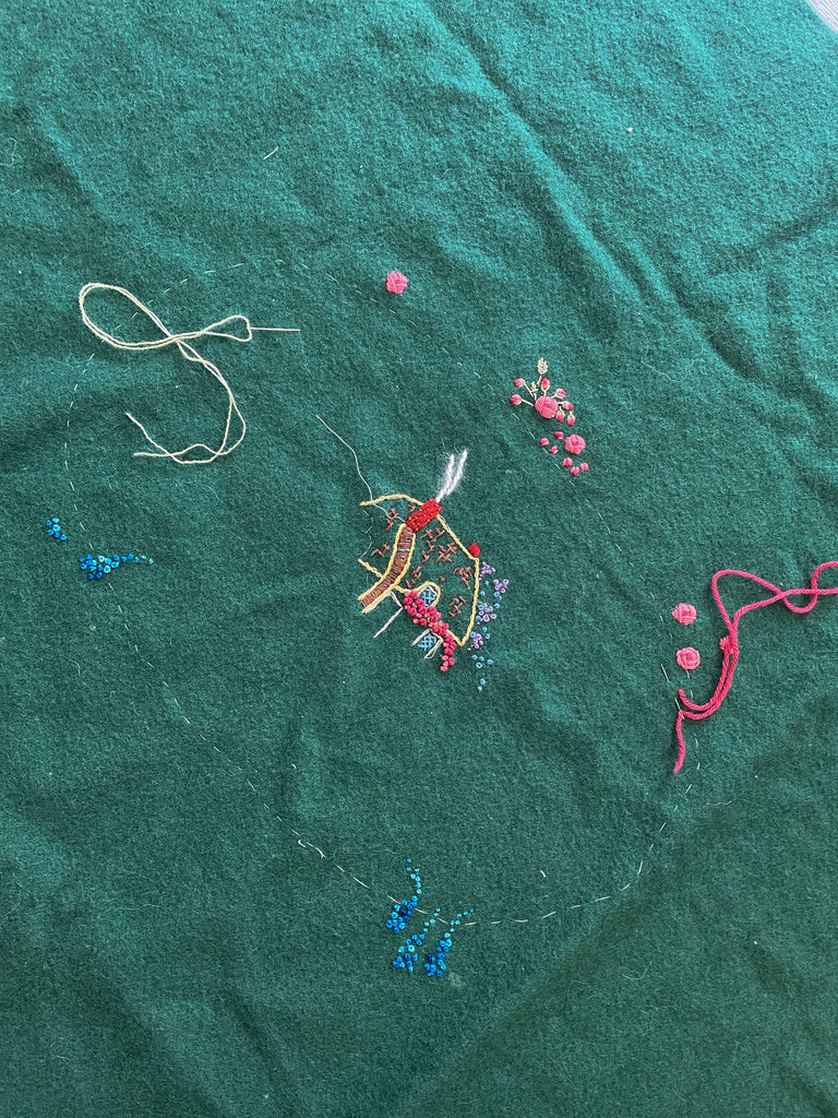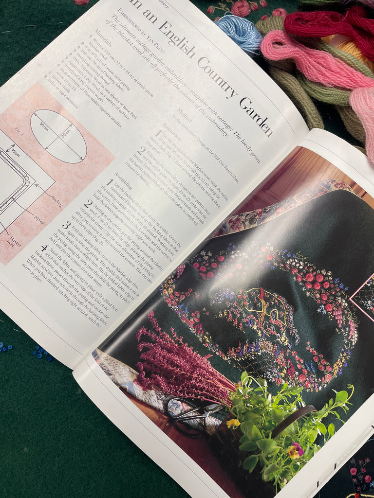 Embroidery Kit U.F.O. - Country Garden on Felted Green Wool