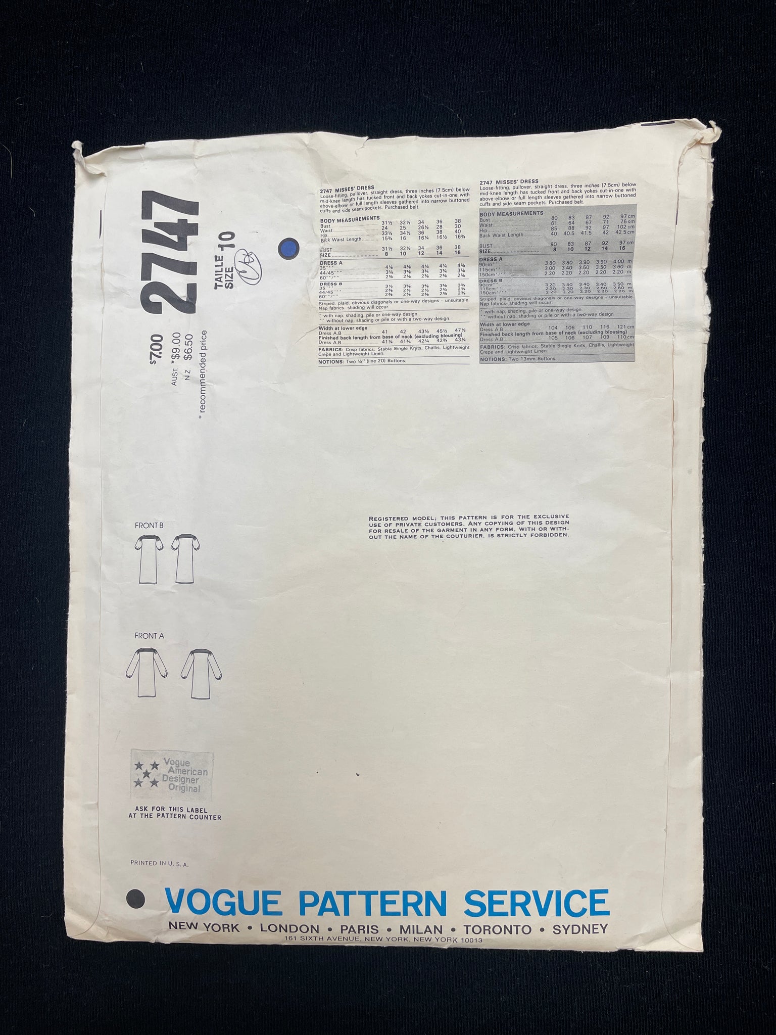 Pattern Pieces: factory folded with instructions included.