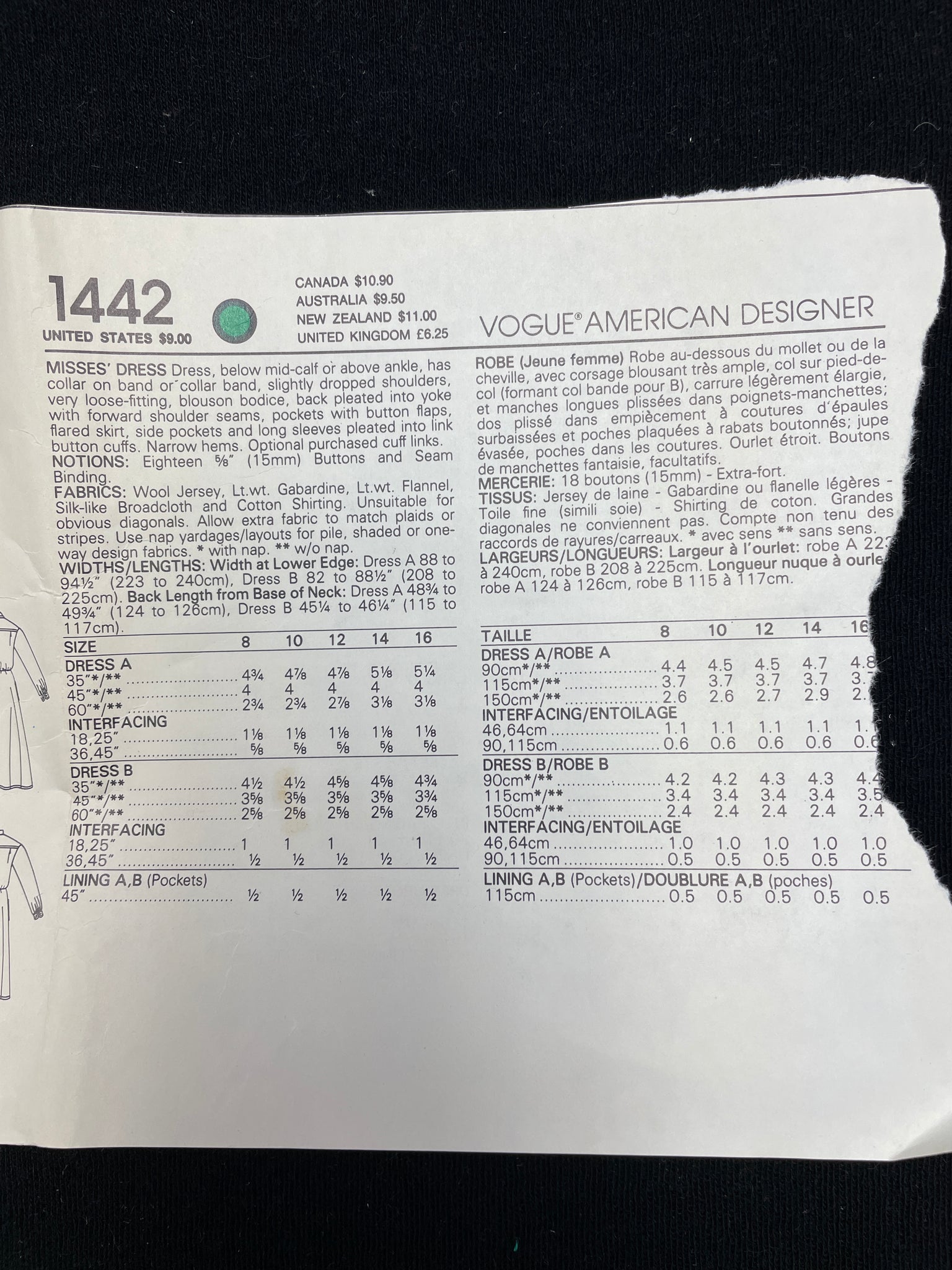 Pattern pieces: factory folded with instructions.