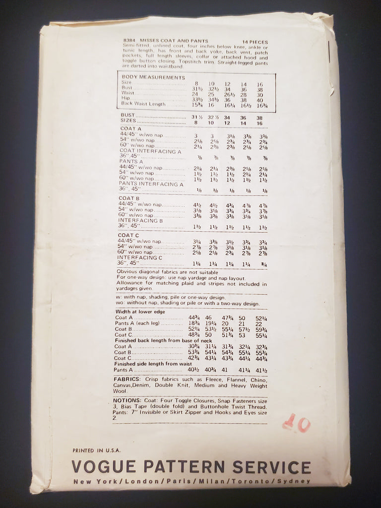 Pattern pieces: factory folded with instructions.