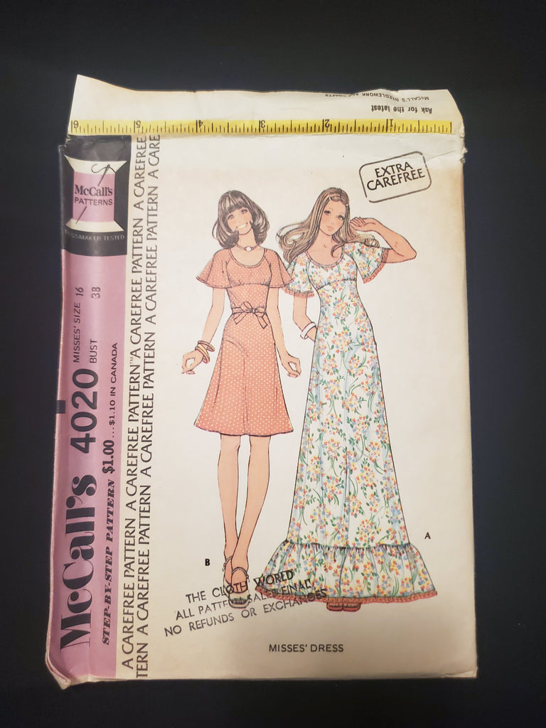 1974 McCall's 4020 Sewing Pattern - Adult Dresses FACTORY FOLDED