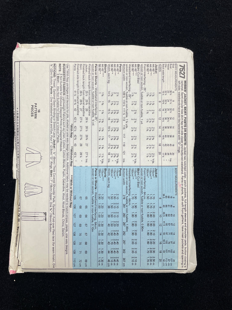 Pattern Pieces: factory folded but instructions are missing.
