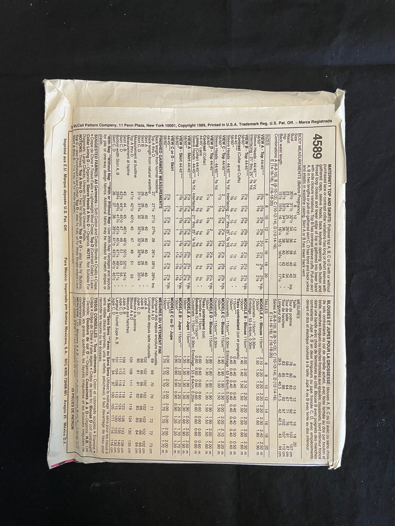 Pattern Pieces: factory folded but instructions are missing.