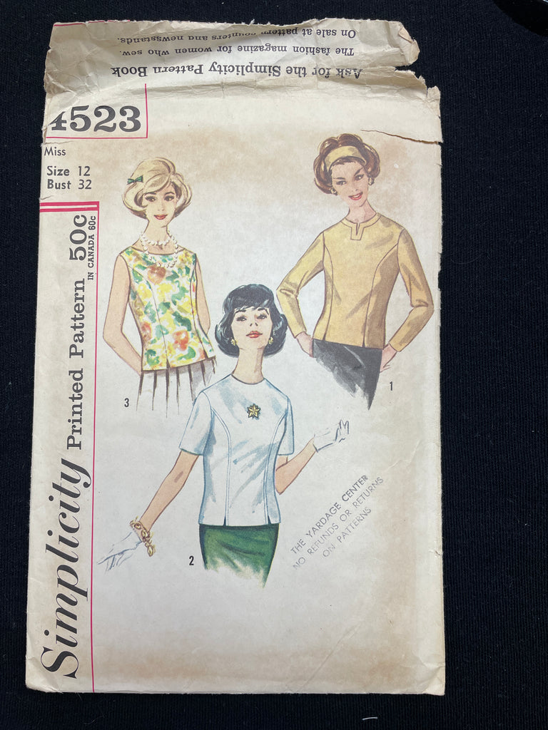 1960's Simplicity 4523 Sewing Pattern - Blouses