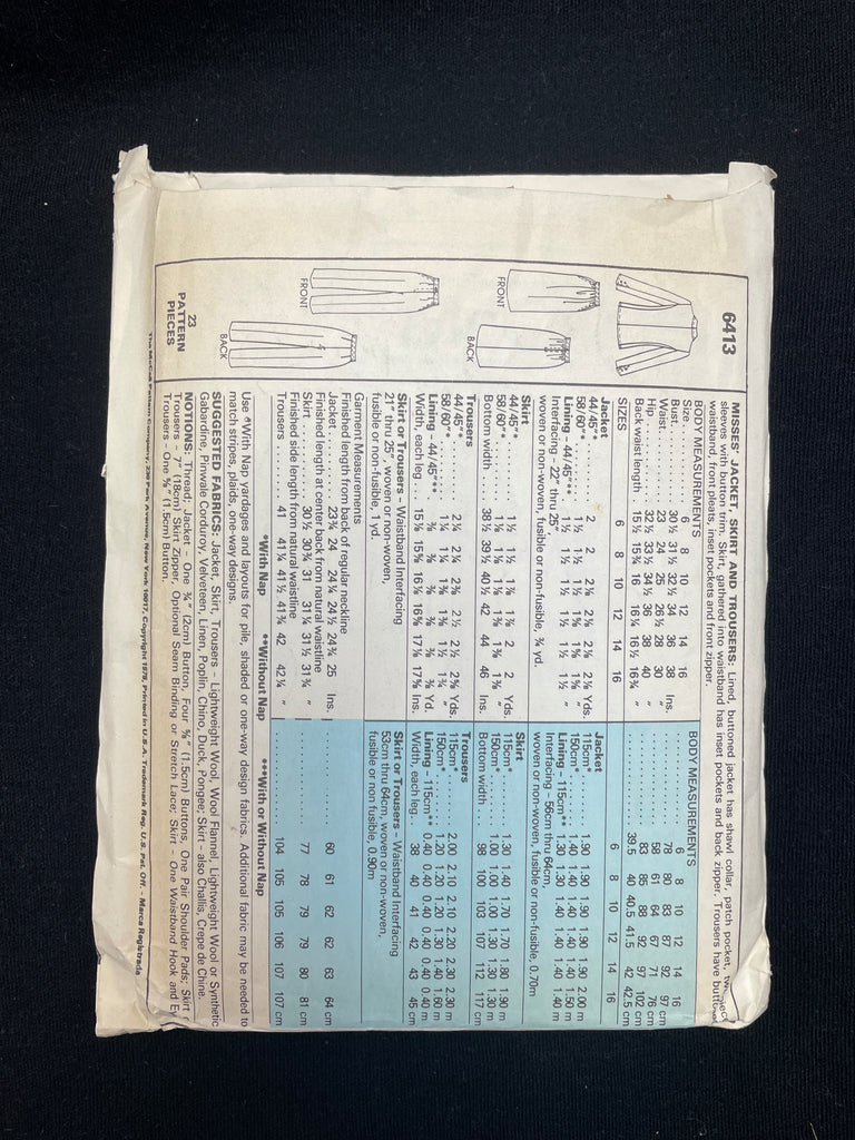 1978 McCall's 6413 Sewing Pattern - Jacket, Skirt and Pants