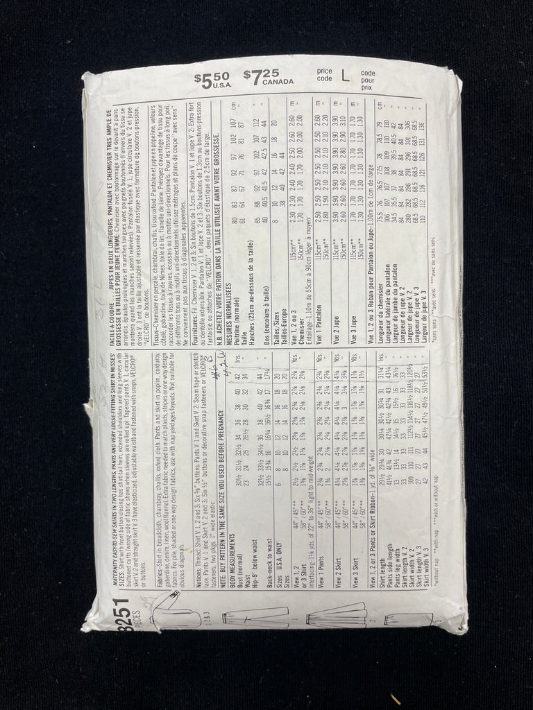 Pattern Pieces: factory folded with instructions included.