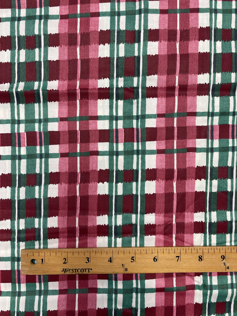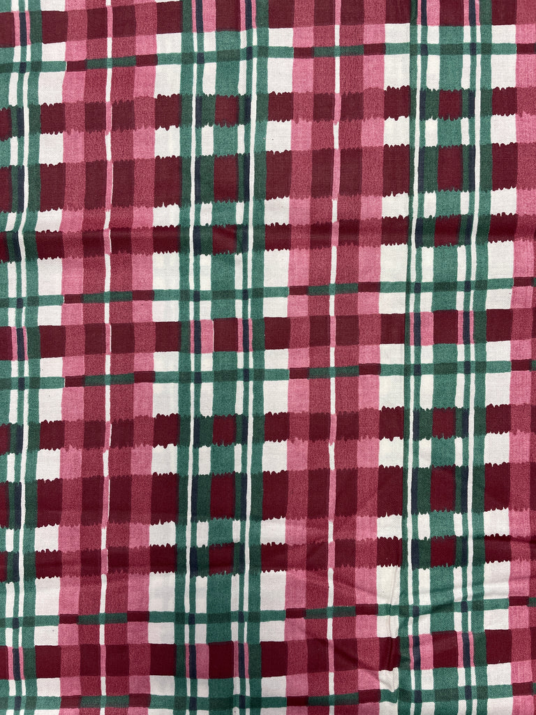 2 2/3 YD Cotton Printed Plaid - White with Reds and Greens