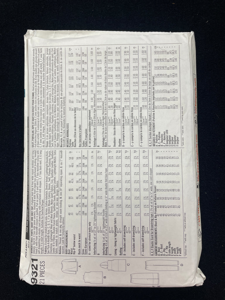 2000 Simplicity 9321 Sewing Pattern - Adult Knit Vest, Pants, Skirt and Top FACTORY FOLDED