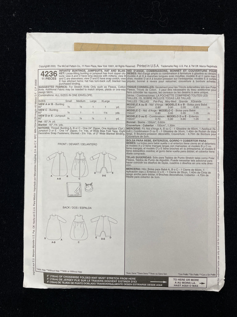 Pattern pieces: missing tab for version 1 (piece F). Instructions and transfers are included.