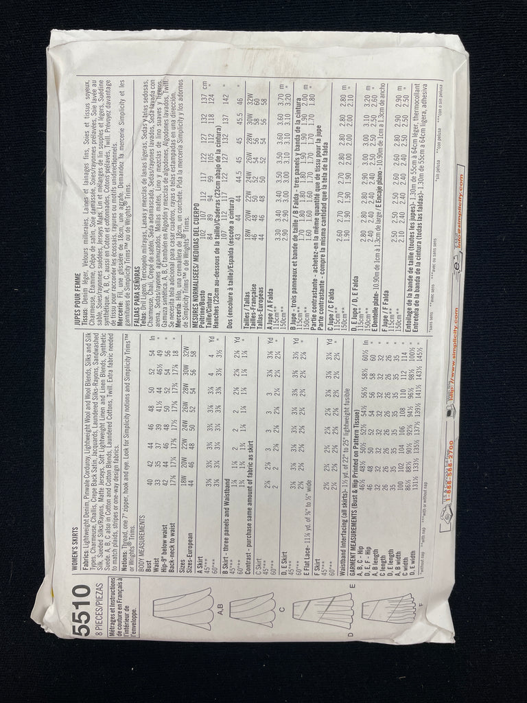 2003 Simplicity 5510 Sewing Pattern - Adult Skirts FACTORY FOLDED