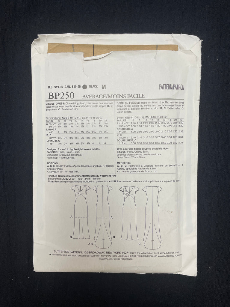 2011 Butterick 250 Sewing Pattern - Dress FACTORY FOLDED