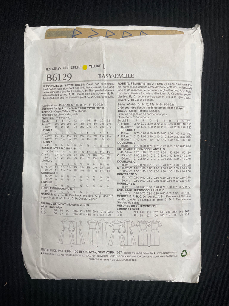 2014 Butterick 6129 Sewing Pattern - Dresses FACTORY FOLDED